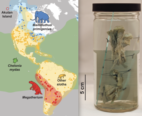 有一小块“猛犸”肉的标本被保存在耶鲁大学皮博迪自然史博物馆中,不过它的标签是“大地懒”,而不是“猛犸象”(图片来源:cgab.yale.edu)