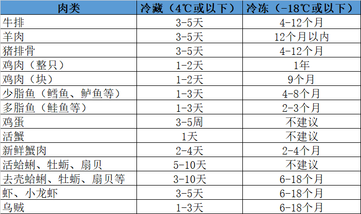 下面是美国Foodsafety网站以及美国农业部推荐的一些生肉保存时间: